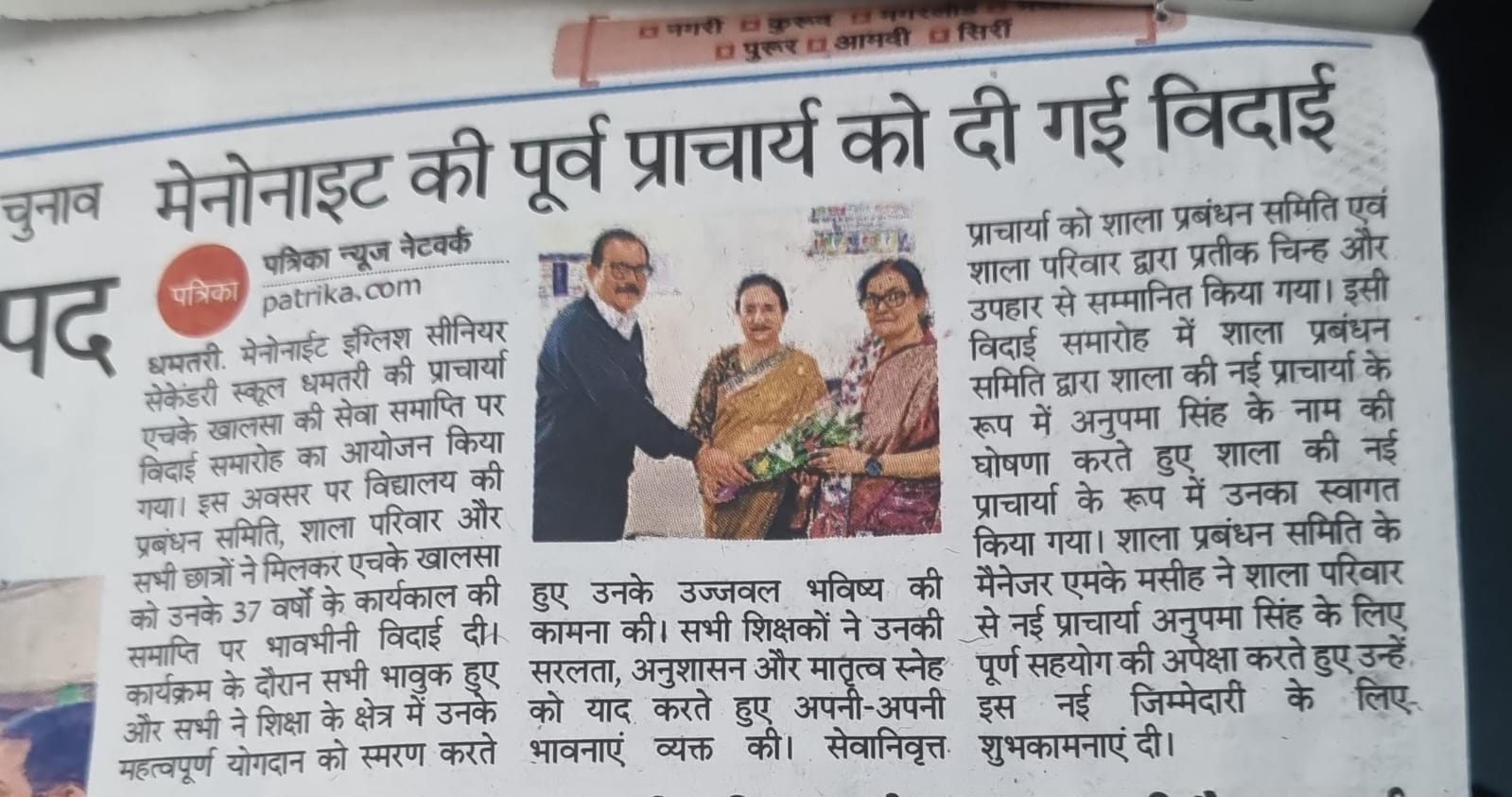 Mennonite English Senior Secondary School, Ratnabandha Road, Dhamtari (C.G.) 493773